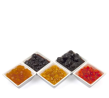 Agrest | Aronia | Borówka amerykańska | Czarna porzeczka | Czereśnia kolorowa | Dynia | Gruszka kolorowa | Jabłko (kostka, ósemka) | Jarzębina | Marchew | Mieszanka keksowa | Rabarbar | Skórka cytrynowa | Skórka pomarańczowa (kostka, płaty, paski) | Śliwka | Truskawka | Wiśnia